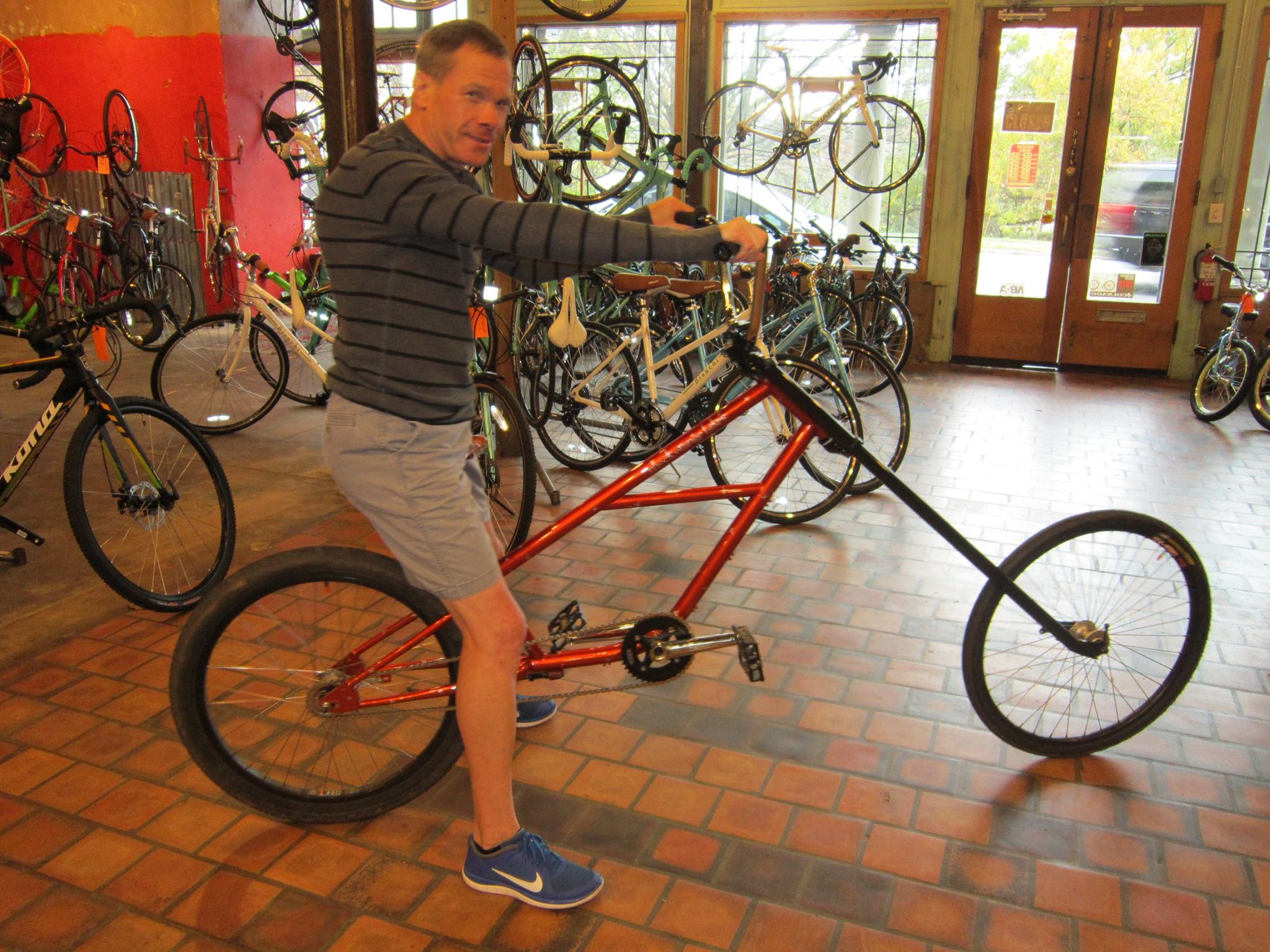 Timmy on the Mock Orange Bikes Chopper. Looking Good!